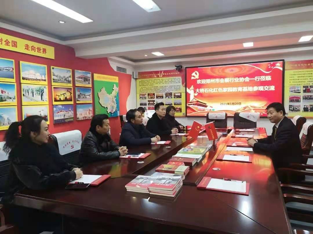 1月20日下午,鄭州天天會(huì)展服務(wù)有限公司副總經(jīng)理、鄭州會(huì)展行業(yè)協(xié)會(huì)常務(wù)副會(huì)長(zhǎng)夏勝齊隨同鄭州會(huì)展行業(yè)協(xié)會(huì)支部委員會(huì)參觀了大橋石化紅色家園。中共鄭州會(huì)展行業(yè)協(xié)會(huì)黨支部書(shū)記李秉禹、副書(shū)記邵翠平、鄭州會(huì)展行業(yè)協(xié)會(huì)秘書(shū)長(zhǎng)劉亞娜、鄭州會(huì)展行業(yè)協(xié)會(huì)常務(wù)副會(huì)長(zhǎng)馬玉群等人共同參加了此次學(xué)習(xí)。河南大橋石化集團(tuán)黨委副書(shū)記尤連平、大橋石化黨委副主任申建黨百忙之中,熱情接待并全程陪同。